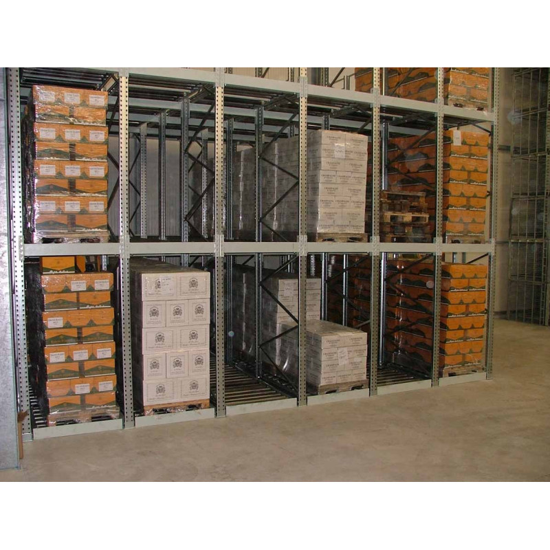 Optimiertes Durchlaufregal für das Logistikmanagement Unser Regal mit FIFO-System führt zu einer deutlichen Zeiteinsparung beim Ortswechsel der Gabelstaplerfahrer. Durch die kompakte Lagerung, die folglich weniger Raum für die Vorbereitung und das Hantieren von Paletten erfordert, wird die Anordnung der Lagerflächen optimiert. Unser stabiles Durchlaufregal ist für einfacheres Handling und leichtere Beförderung der Waren in jeder Arbeitsumgebung konzipiert. Neben den Führungsschienen ist es auch mit durch einen Rollenschutz verstärkten Standardrollen ausgestattet. Dadurch bietet es einen verbesserten Transport Ihrer Waren. Die Struktur unseres Regals mit FIFO-System optimiert den Warenumschlag. Bremsrollen sorgen für den sicheren Empfang Ihres Lagerguts, während ein Palettentrenner und ein Anschlagstopp die schnelle, problemlose Übernahme der Waren durch das Personal gewährleisten. Wenn sie ausschließlich nicht verderbliches Lagergut haben und mehr Platz in Ihrem Lagerraum möchten, zögern Sie nicht, sich über unser Durchlaufregal mit LIFO-System zu informieren.