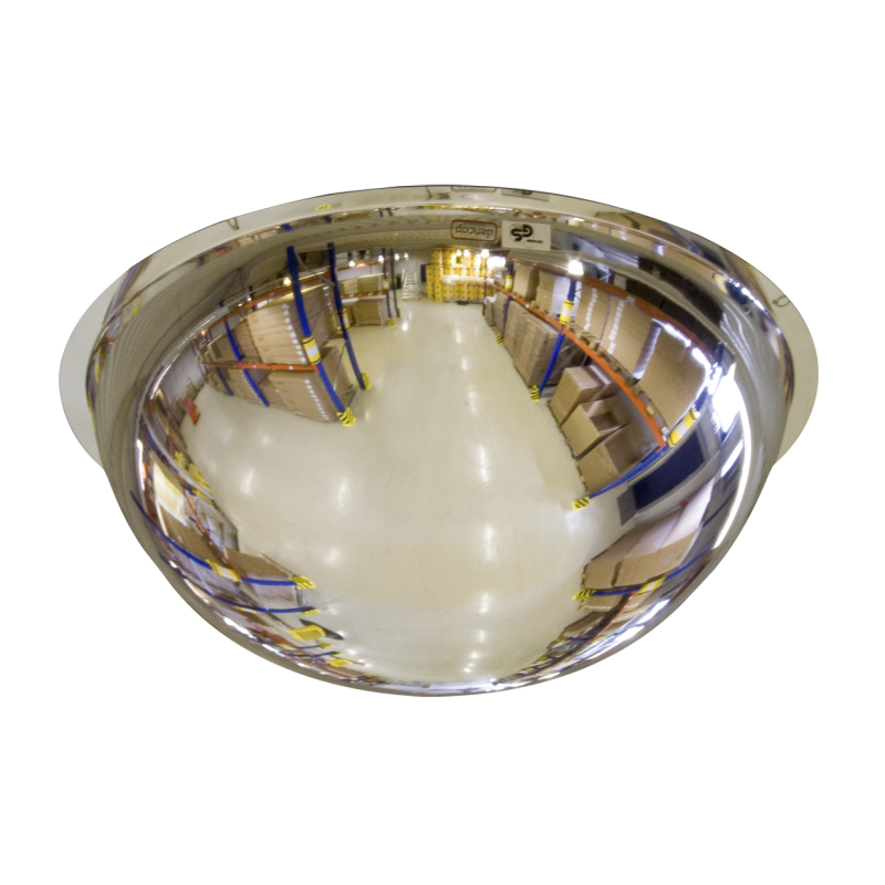 Sicherheitsspiegel für Lagerhäuser und Industriestandorte Unser Sicherheitsspiegel wird in flacher Bauweise angeboten. Er eignet sich besonders zur Abdeckung von unübersichtlichen Durchgangsbereichen wie Garagenausfahrten. Er ist sowohl im Innen- als auch Außenbereich einsetzbar. Sein roter PVC-Rahmen zieht die Aufmerksamkeit auf sich, was zu einer besseren Unfallverhütung beiträgt. Er kann ganz einfach an Pfosten mit einem Durchmesser zwischen 50 und 85 mm Durchmesser oder an der Wand befestigt werden. Sein Kugelgelenk erlaubt eine millimetergenaue Einstellung. Ein nützlicher Überwachungsspiegel im Laden. Wir bieten Ihnen auch einen kuppelförmigen Überwachungsspiegel. Sie haben die Wahl zwischen einem Winkel von 90°, um Mauerwinkel abzudecken, 180° für T-förmige Räume und 360° für einen Gesamtüberblick Ihrer Verkaufsfläche. Die 90 °-Version lässt sich durch die vorgebohrten Löcher leicht in Ecken, die 180°-Version an Wänden und die 180 sowie 360°-Versionen an der Decke befestigen. Das letztgenannte Modell kann auch mit Ketten an der Decke aufgehängt werden.