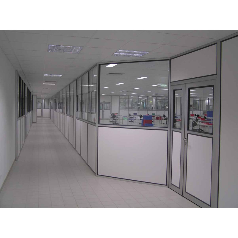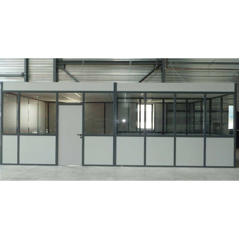 Unsere herausnehmbare Bürotrennwand ist eine praktische, effiziente Lösung für den Einbau eines Büros im Industriebereich. Dank ihrer Feuerbeständigkeit bleibt unsere herausnehmbare Bürotrennwand mit ihren tragenden Teilen aus Aluminium unter allen Umständen zuverlässig. Unsere herausnehmbare Bürotrennwand sorgt auf Grund ihrer einfach oder doppelt verglasten Platten und ihrer Schallisolierung für optimale Arbeitsbedingungen.