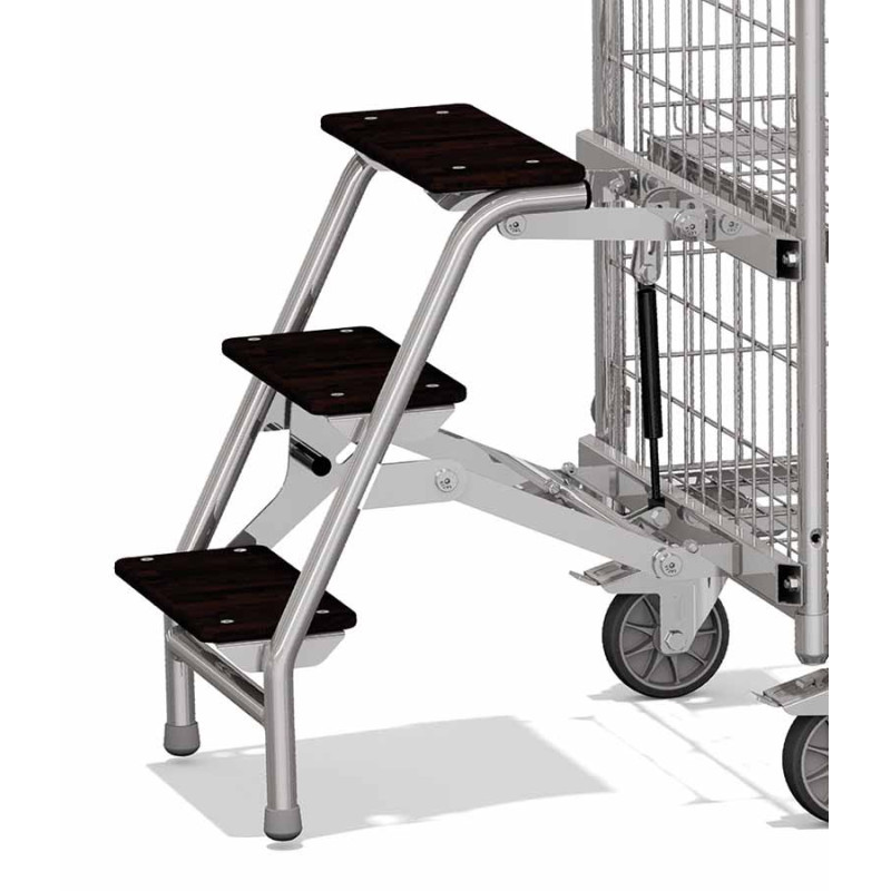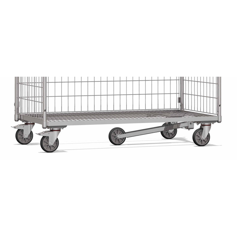 Ein Wagen zum Kommissionieren Mit einer Tragkraft von 300 kg ist unser Kommissionierwagen in zwei verschiedenen Größen erhältlich: 850 x 610 oder 1250 x 610 mm. Seine oberen Platten können wahlweise waagrecht oder 30° geneigt sein. Ihre Ränder können je nach Ihren Anforderungen nach oben oder unten ausgerichtet werden. 2 vertikale Griffe sind an den Gittern angeschraubt und sorgen für optimale Handhabung. 4 Lenkrollen, davon 2 mit Feststeller, garantieren die besondere Handlichkeit unseres Metallwagens. Letzte verfügen über TPE-Reifen mit Kunststofffelge und Nabe mit Kugellager und Fadenschutz. Optional bieten wir einen Wagen mit Gitter aus Metallgeflecht auf einer Längsseite. Zur Auswahl stehen auch eine zusätzliche Platte, ein fünftes Rad mit Gelenkarm für optimales Geradeausfahren oder auch ein Fachboden für eine am Geflecht montierte Schreibunterlage, mit Papierklemme und verstellbarer Neigung. Ein Trittbrett mit 3 Stufen und einer Höhe von 600 mm ist ebenfalls erhältlich. Stahlrohr und rutschhemmende Holzstufen, sein kippsicherer Endanschlag und sein Sperrsystem in Arbeitsposition garantieren eine absolut sichere Verwendung. Dank der mitgelieferten Spezialgriffe für Wagen und einfachen Nutzung mittels Gasdruckfeder ist er ein ergonomisches Mittel. Wir bieten auch einen passenden Wagen für den Transport Ihrer sperrigen Produkte und Pakete.