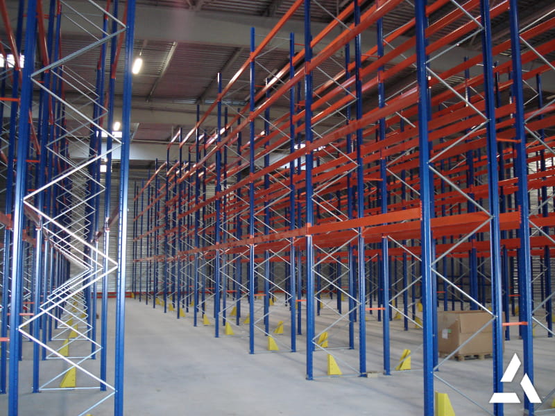 Il maximise la densité en réduisant les allées. Adapté aux grandes séries homogènes et aux stocks par lots. Il impose en revanche une logique FIFO/LIFO selon la technologie, et une manutention plus exigeante.